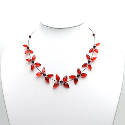 バルティックアンバー(琥珀)、バルト海リトアニア産 - リーフ型ワイヤーネックレス、サイズ約45cm [y-n-08]