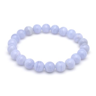 名前の通り、青瑪瑙(アゲート)にレース状の縞模様が入った石で、色味が違うものに「サードオニキス」「天眼石」があります。また、同色で縞模様が無いものを「ブルーカルセドニー」と呼びます。
