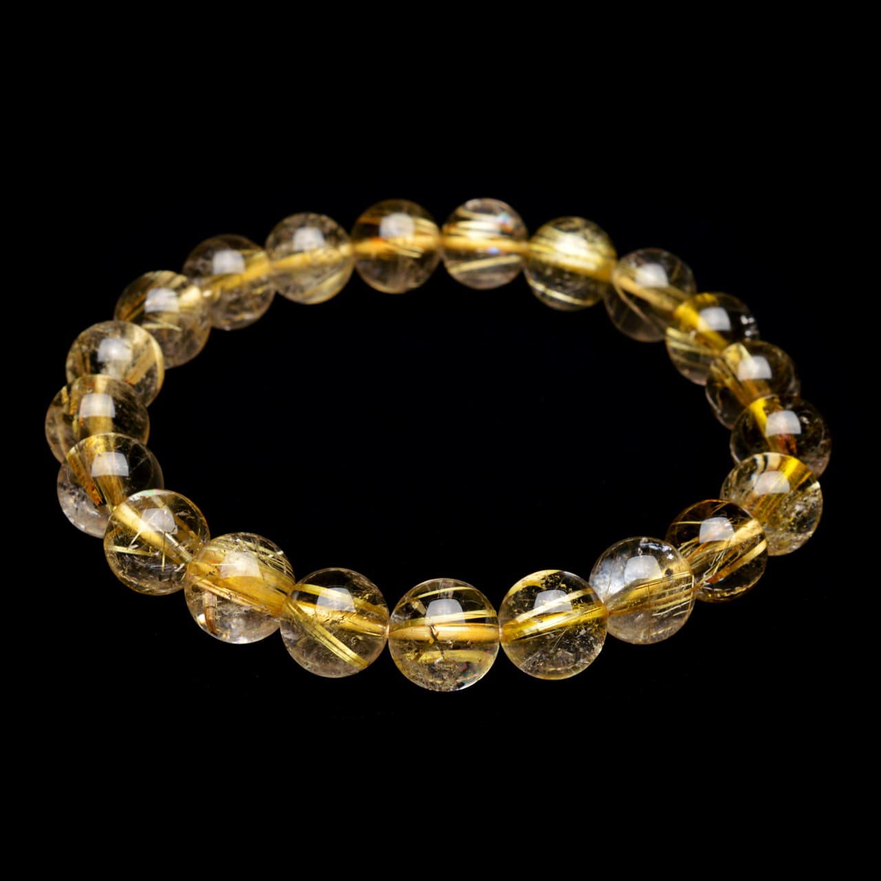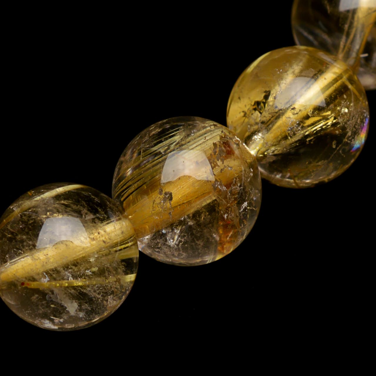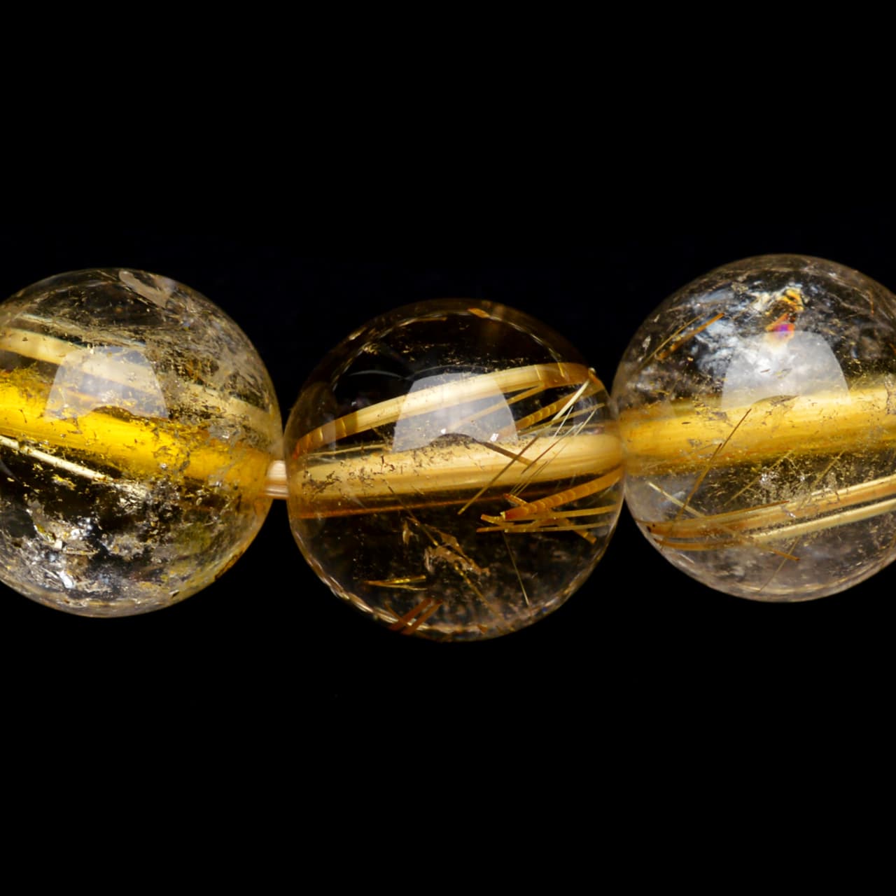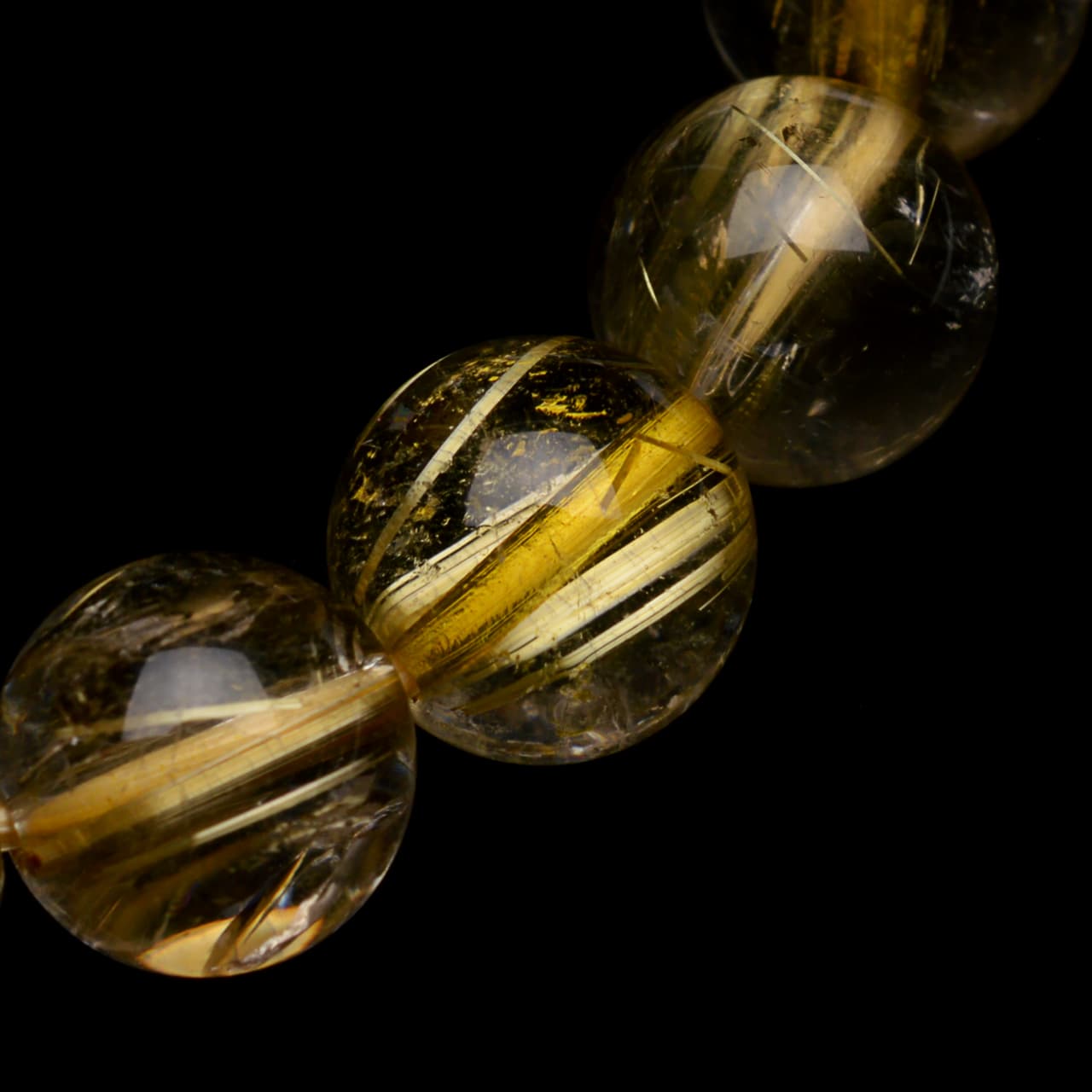 ゴールドタイチンルチルクォーツ - 9.5mm玉、サイズ17cm