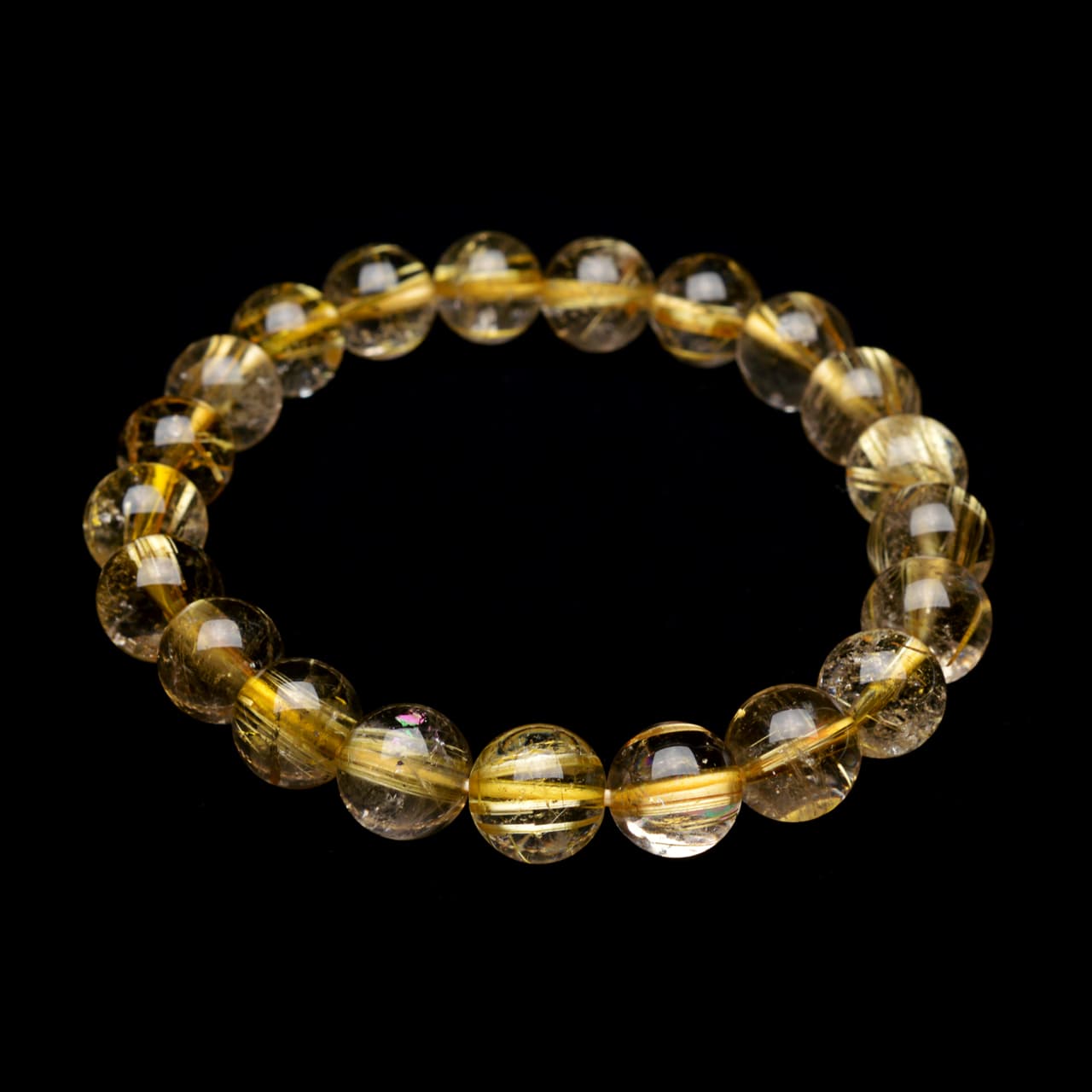 ゴールドタイチンルチルクォーツ - 9.5mm玉、サイズ17cm [y-b-284]