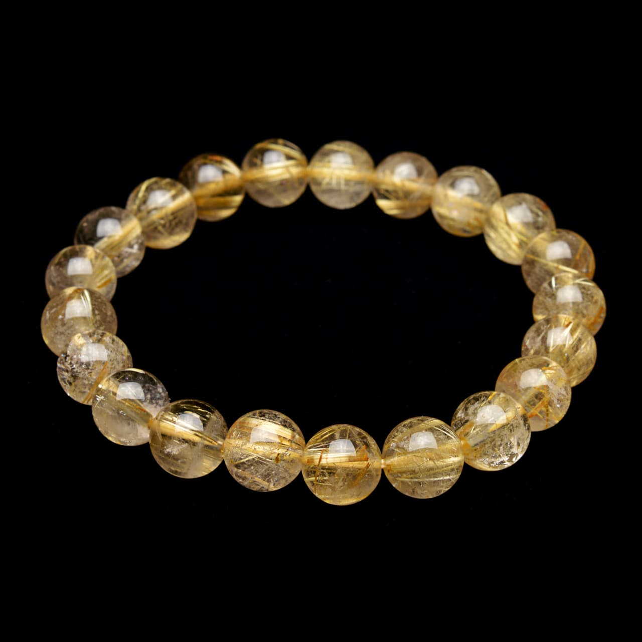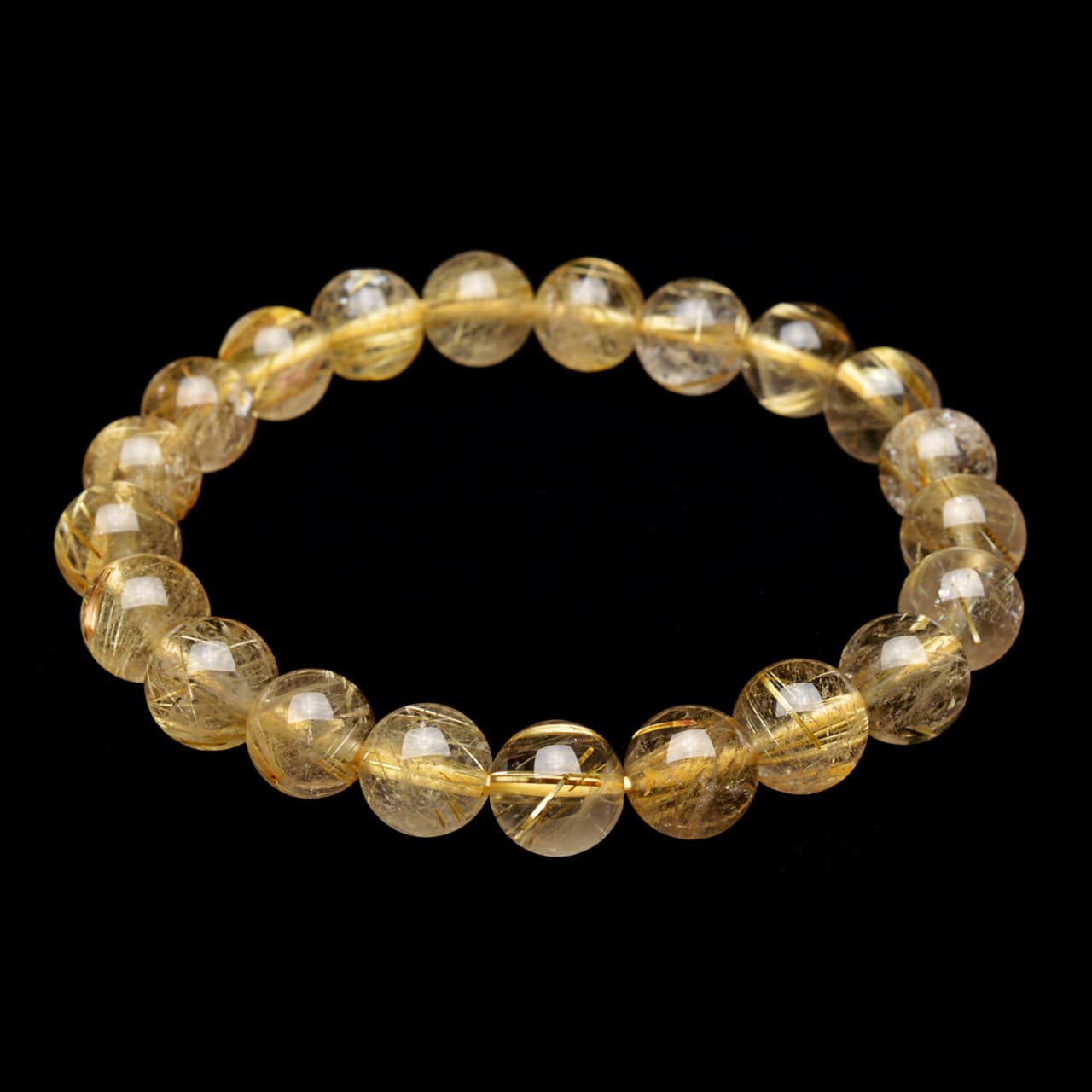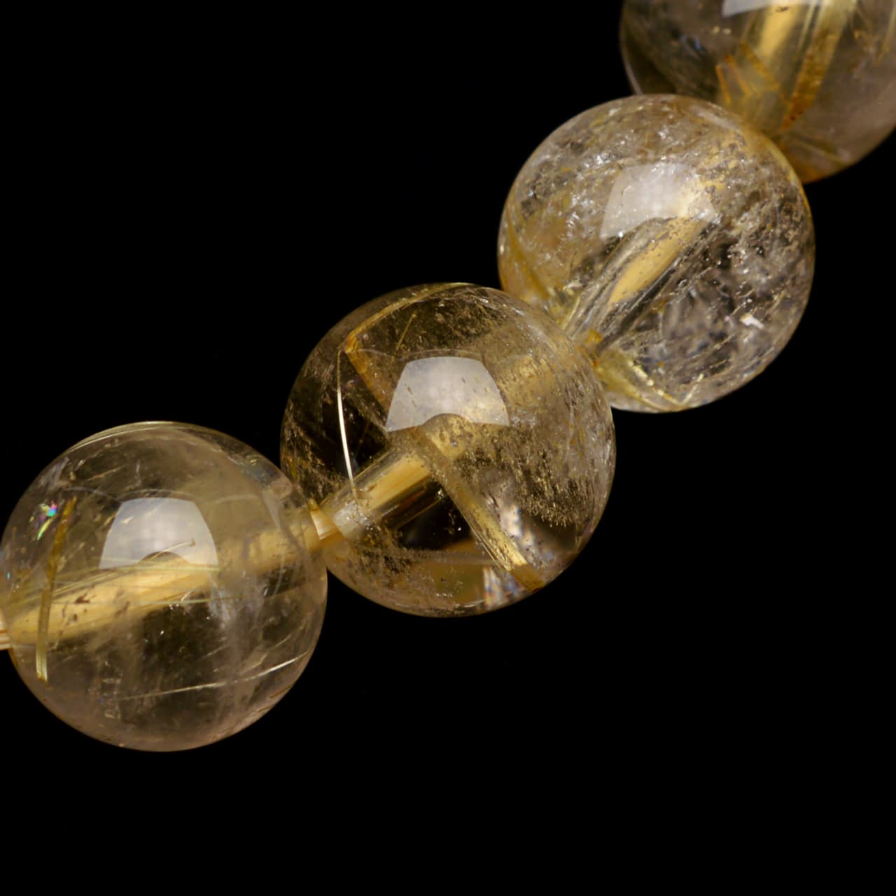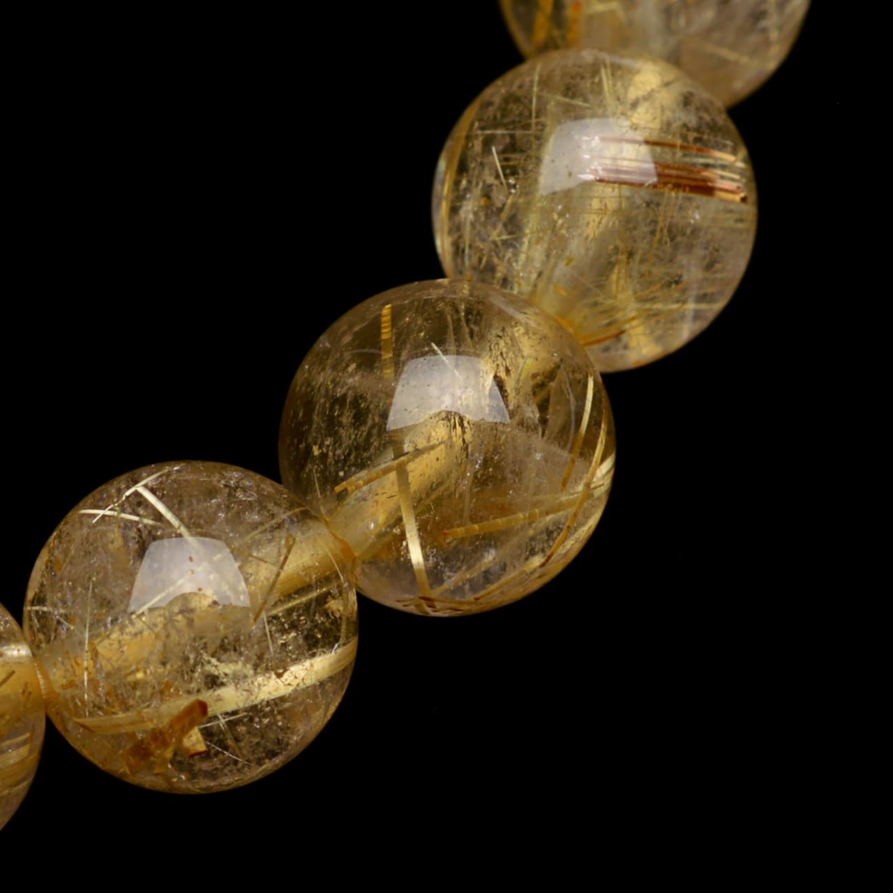 ゴールドタイチンルチルクォーツ - 9mm玉、サイズ16cm [y-b-285]