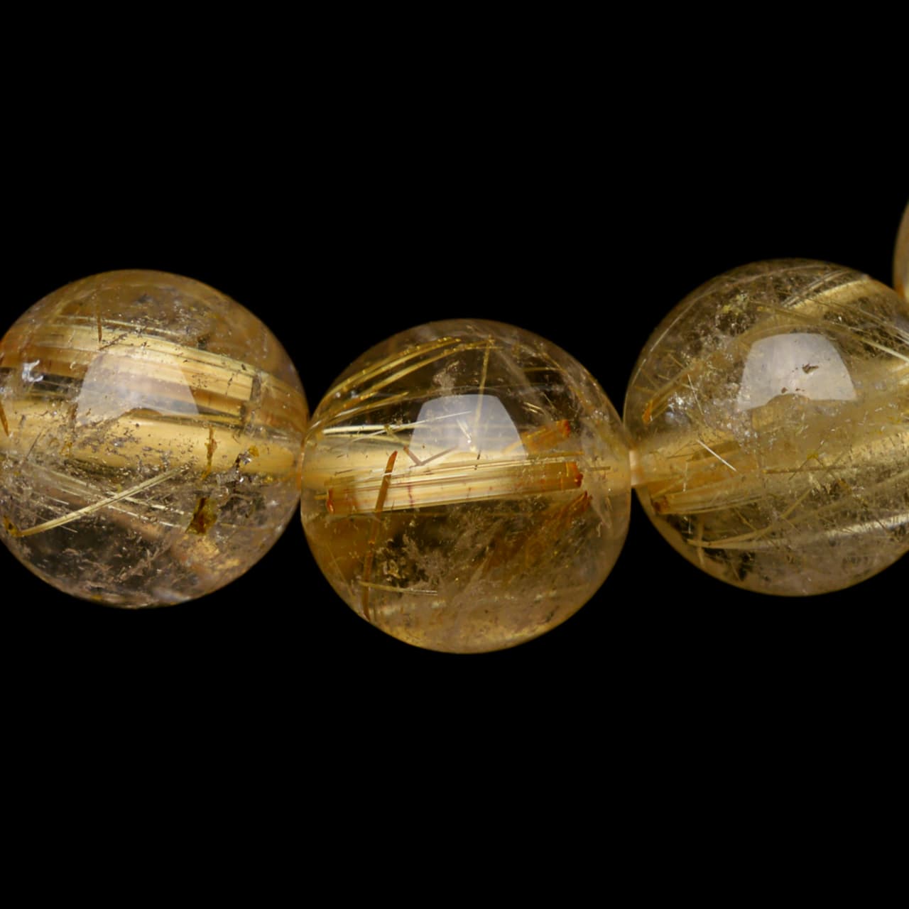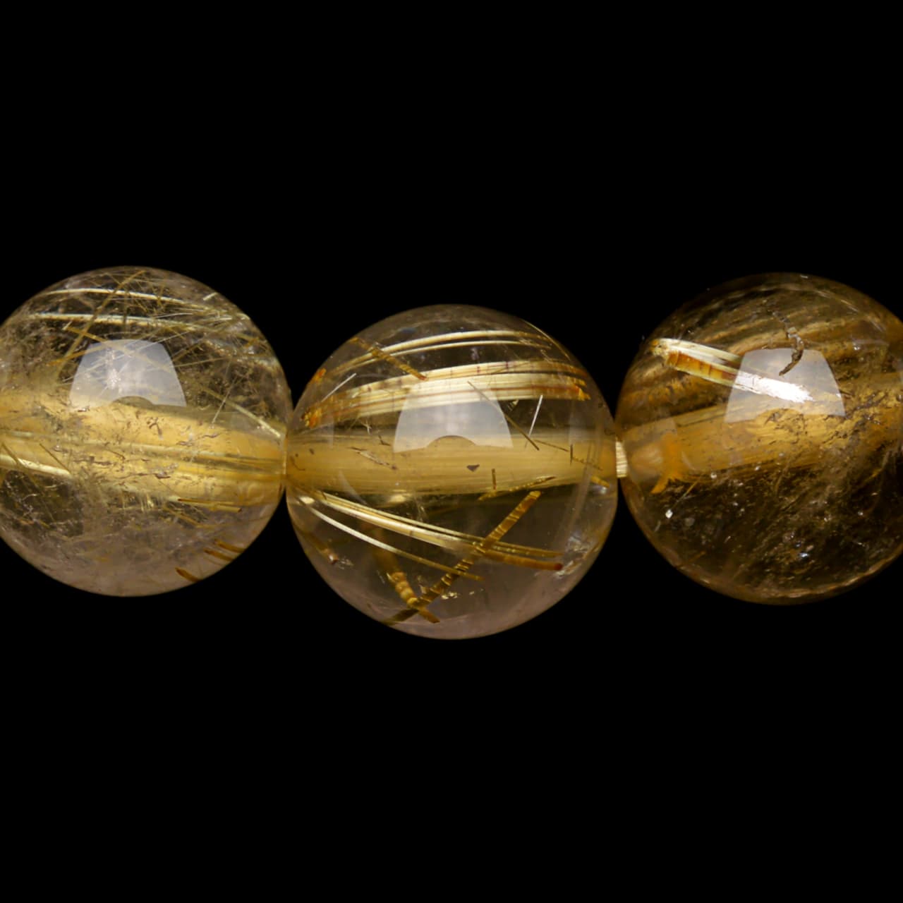 ゴールドタイチンルチルクォーツ - 9mm玉、サイズ16cm